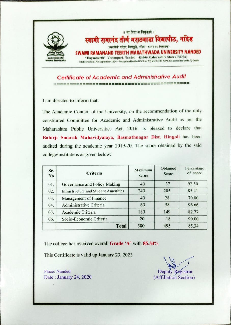 Affiliated to Swami Ramanand Teerth Marathwada University, Nanded
