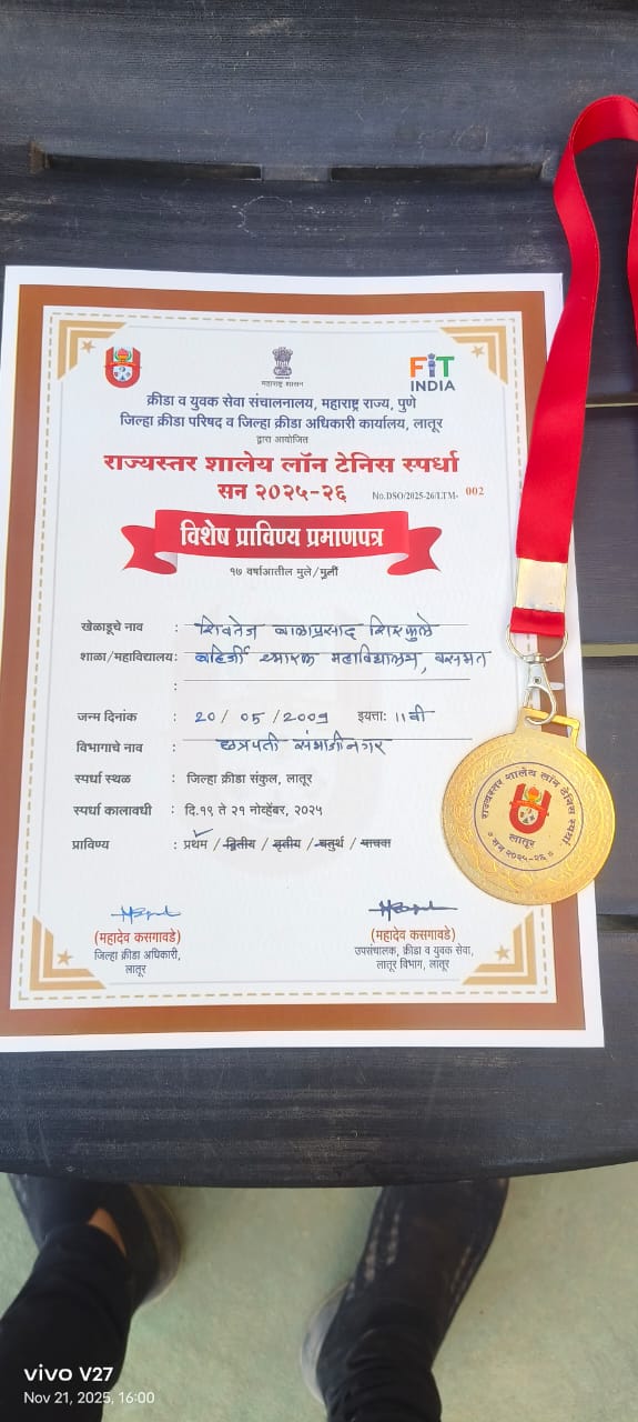 शिवतेज शिरफुले हा विद्यार्थी लॉन टेनिस मध्ये राज्यात गोल्ड मेडल मिळवून पहिला आलेला आहे त्या बद्दल हार्दिक अभिनंदन