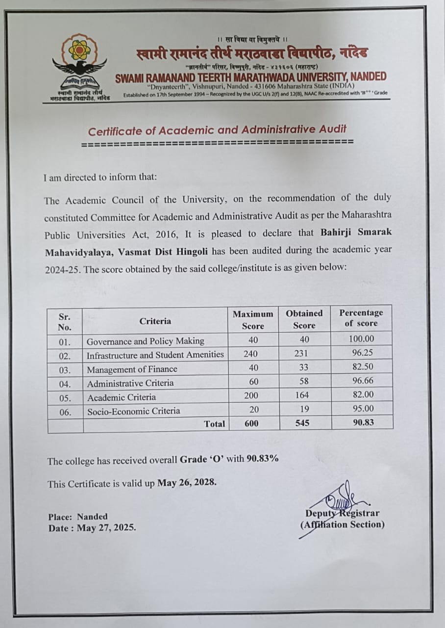Hon. Rajubhaiya Navghare MLA Basmatnagar, Hon Collector, Hingoli, Superintendent of Police, Hingoli visited the campus and discussed about competitive exam cell activities