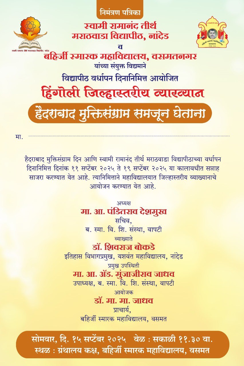 बहीर्जी स्मारक महाविद्यालय, वसमत कल्चरल सेल जिजाऊ जयंती निमित्त आयोजित व्याख्यान