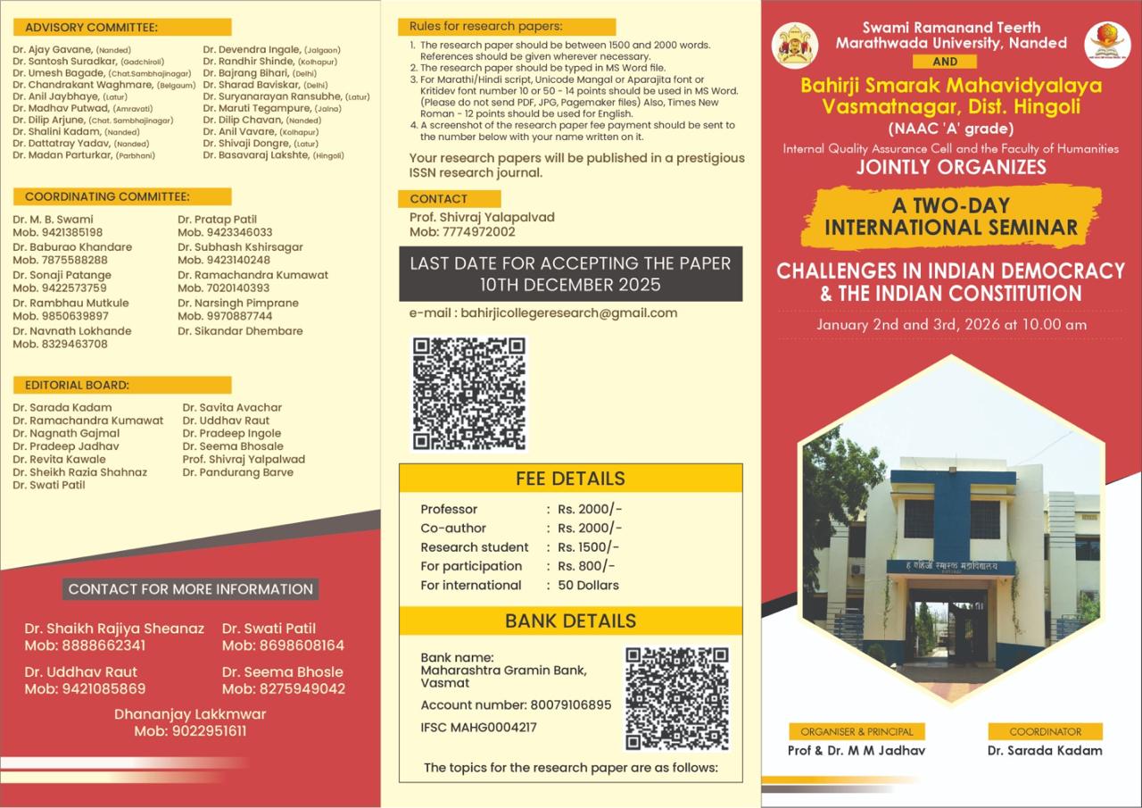 शेख तयबा अहेमद बी . कॉम द्वितीय वर्ष की छात्रा ने कला, वाणिज्य व विज्ञान महा वसंतनगर में आयोजित ऑन लाइन वकृत्व स्पर्धा " हिंदी भाषा और रोजगार के अवसर " इस विषय में तृतीय क्रमांक प्राप्त किया है ।